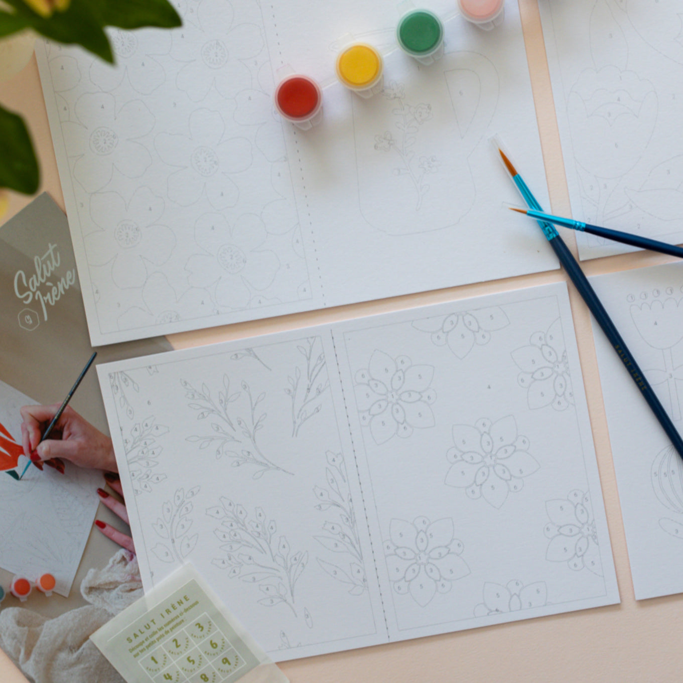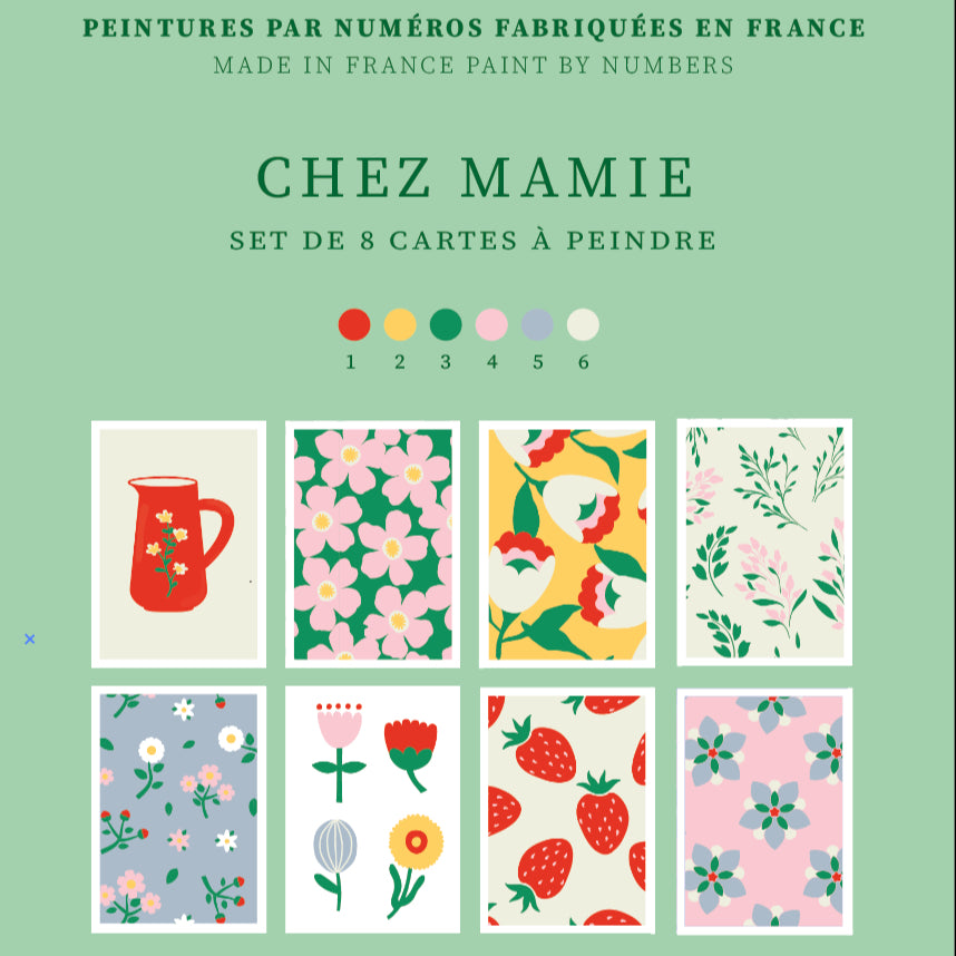 Cartes à peindre par numéros - Chez mamie | 8 cartes