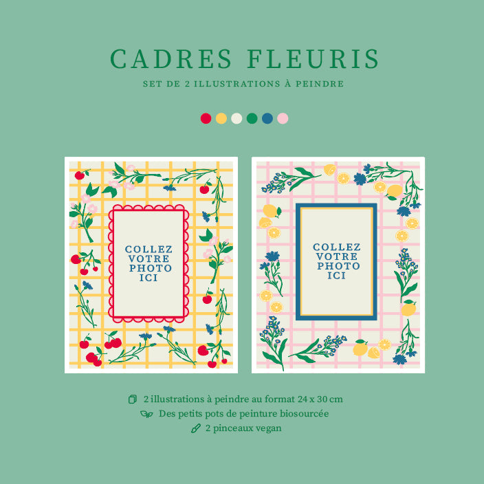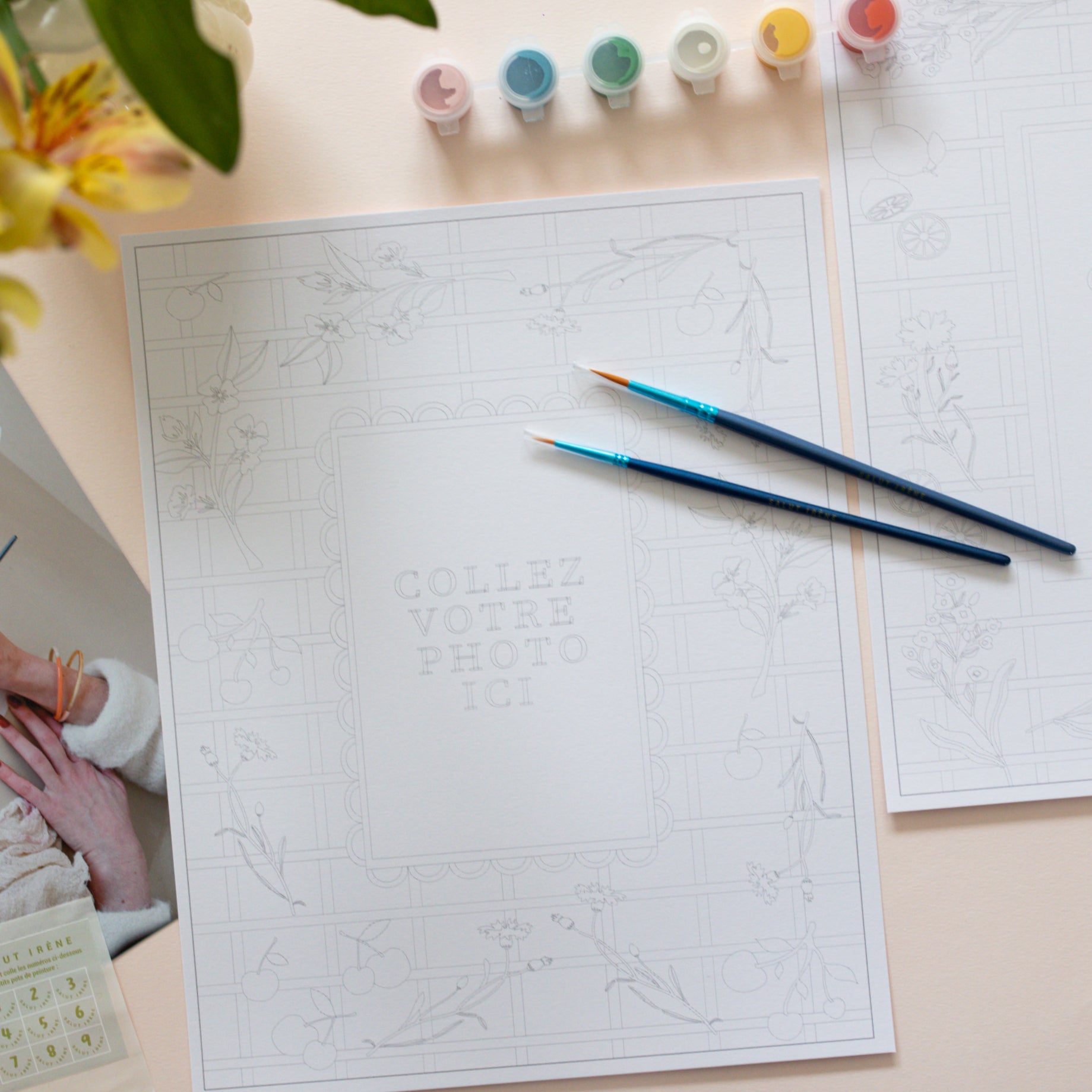 Nouveau ! “Cadres fleuris” est un set de deux passe-partout à peindre. Un kit de peinture SANS numéro pour permettre à chacun de laisser parler sa créativité.