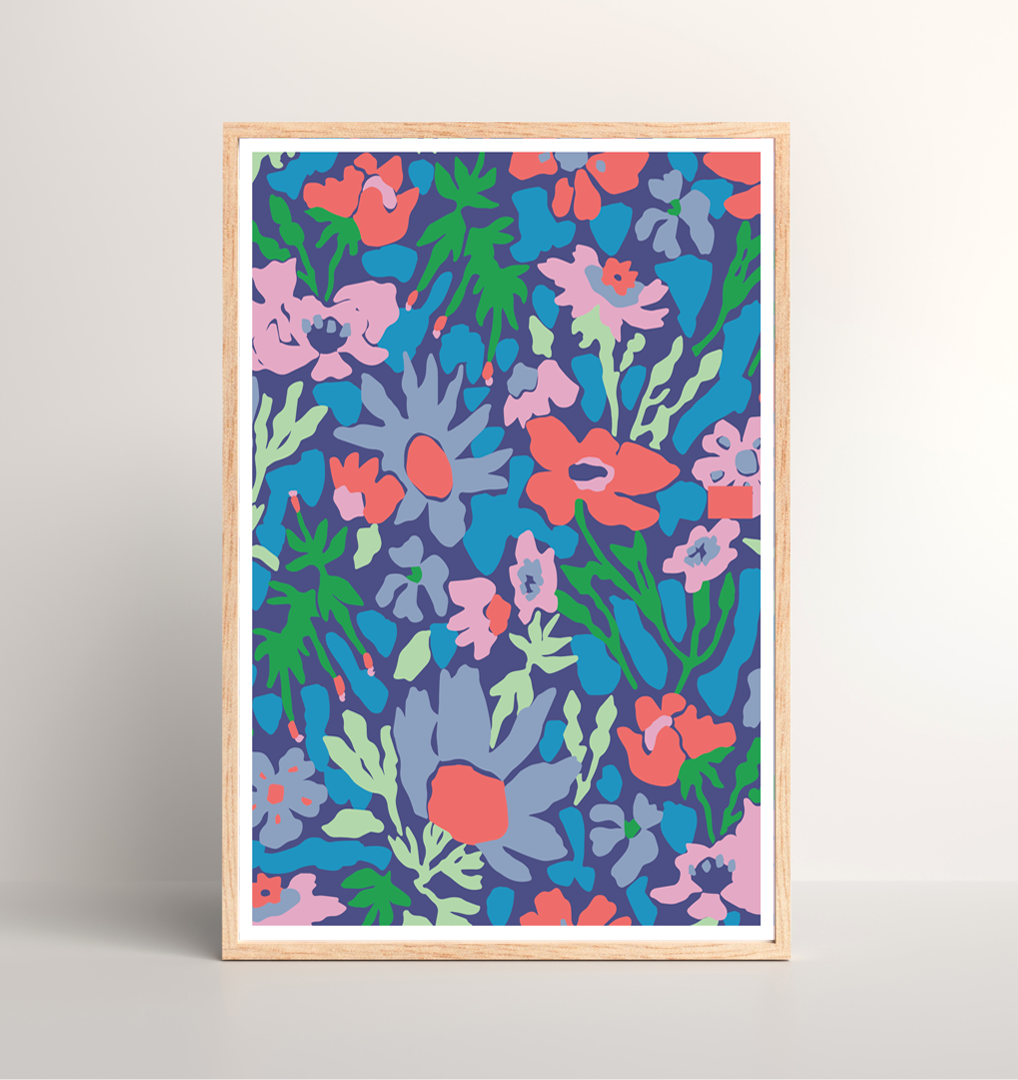 Au gré des nuances de peintures de bleu, vert et rose, redécouvrir le plaisir d'un instant passé à travers les fleurs.