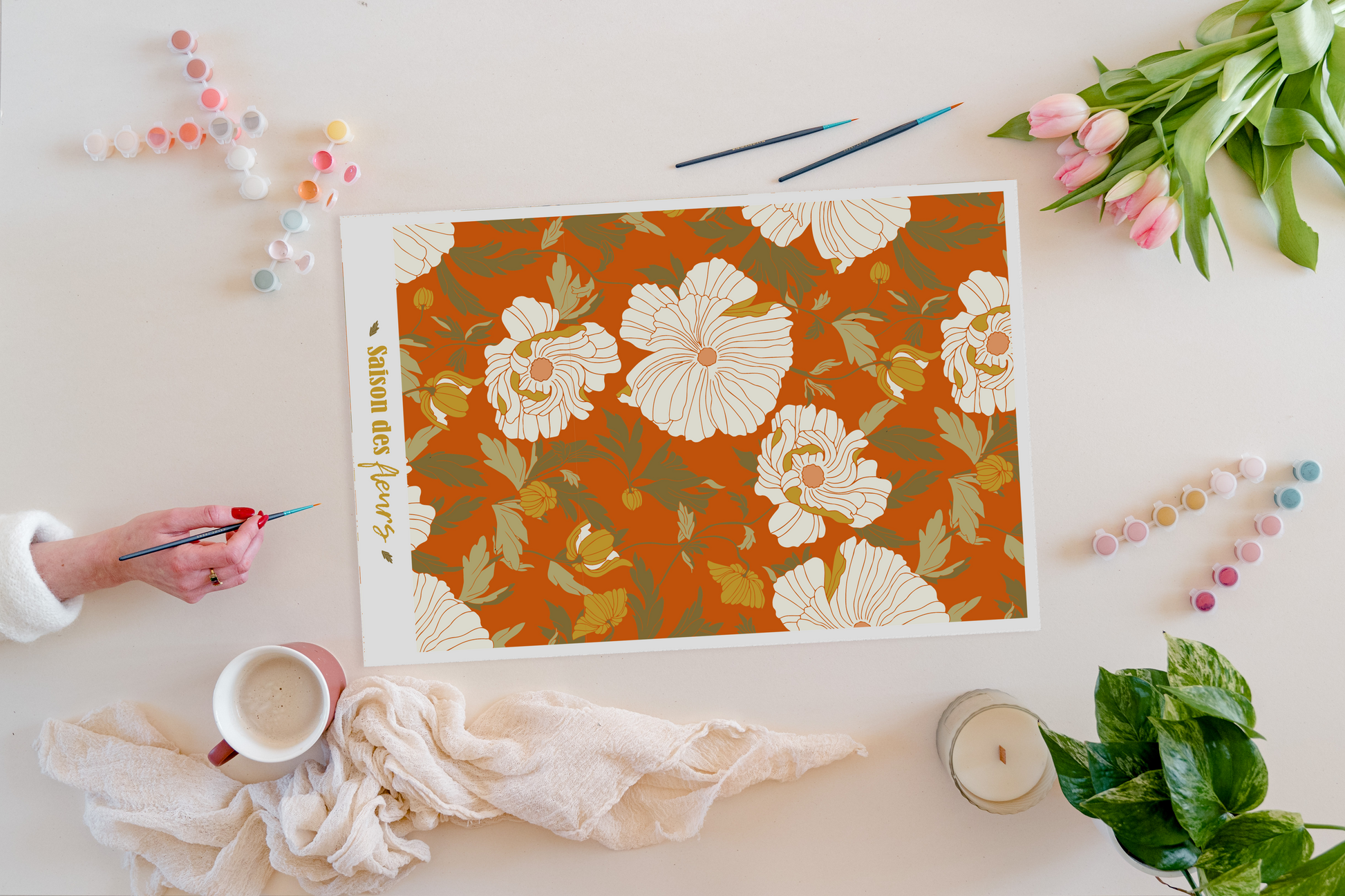 Kit peinture par numéros - Saison des fleurs | 40x60cm - Orange