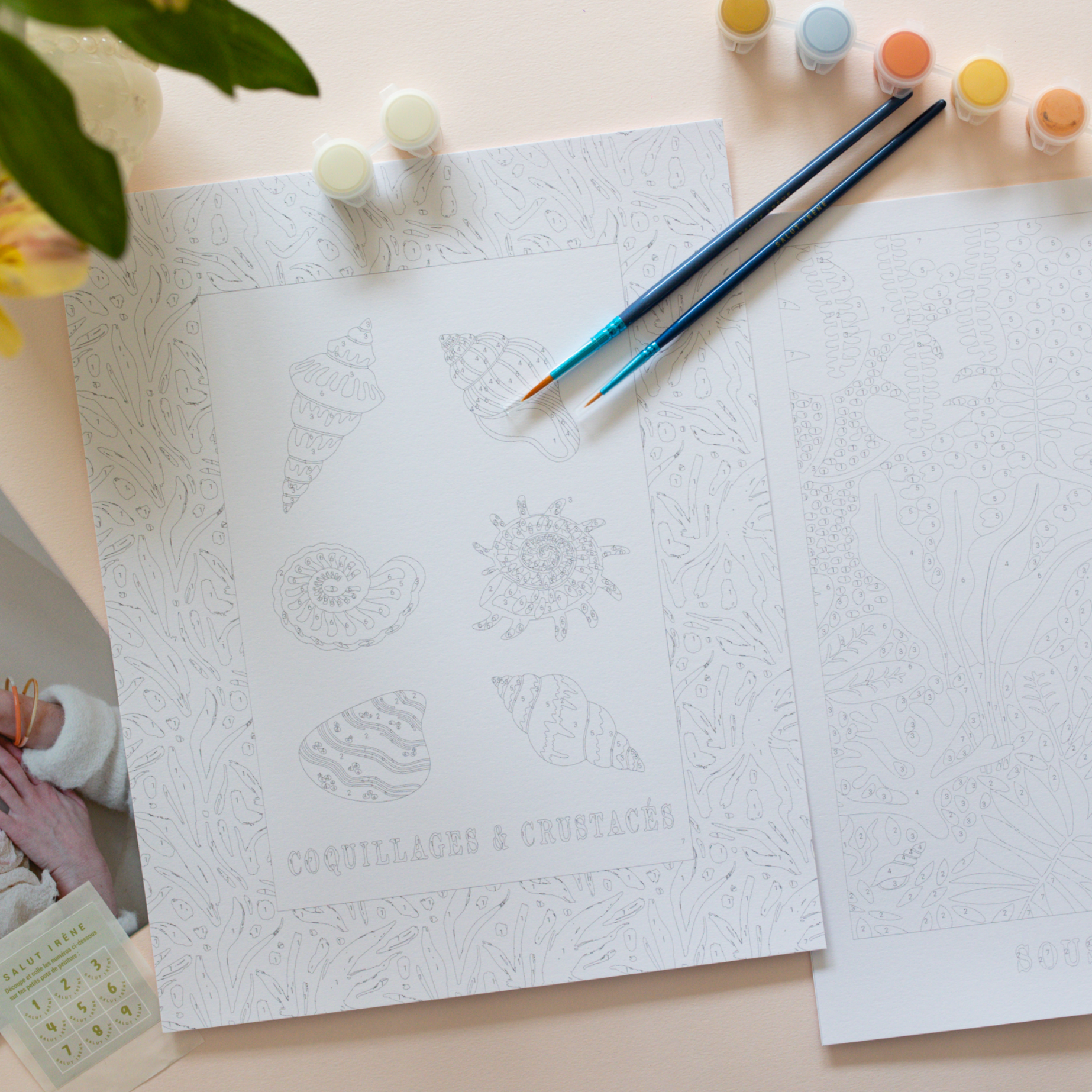 - 2 illustrations numérotées à peindre (format 24 x 30 cm), imprimées en France sur un papier italien de qualité (300g).